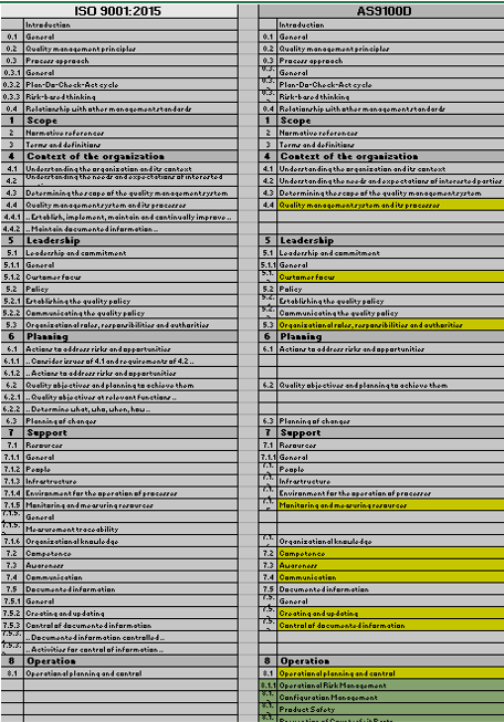 AS9100D Vs ISO9001 2015 Comparison Matrix