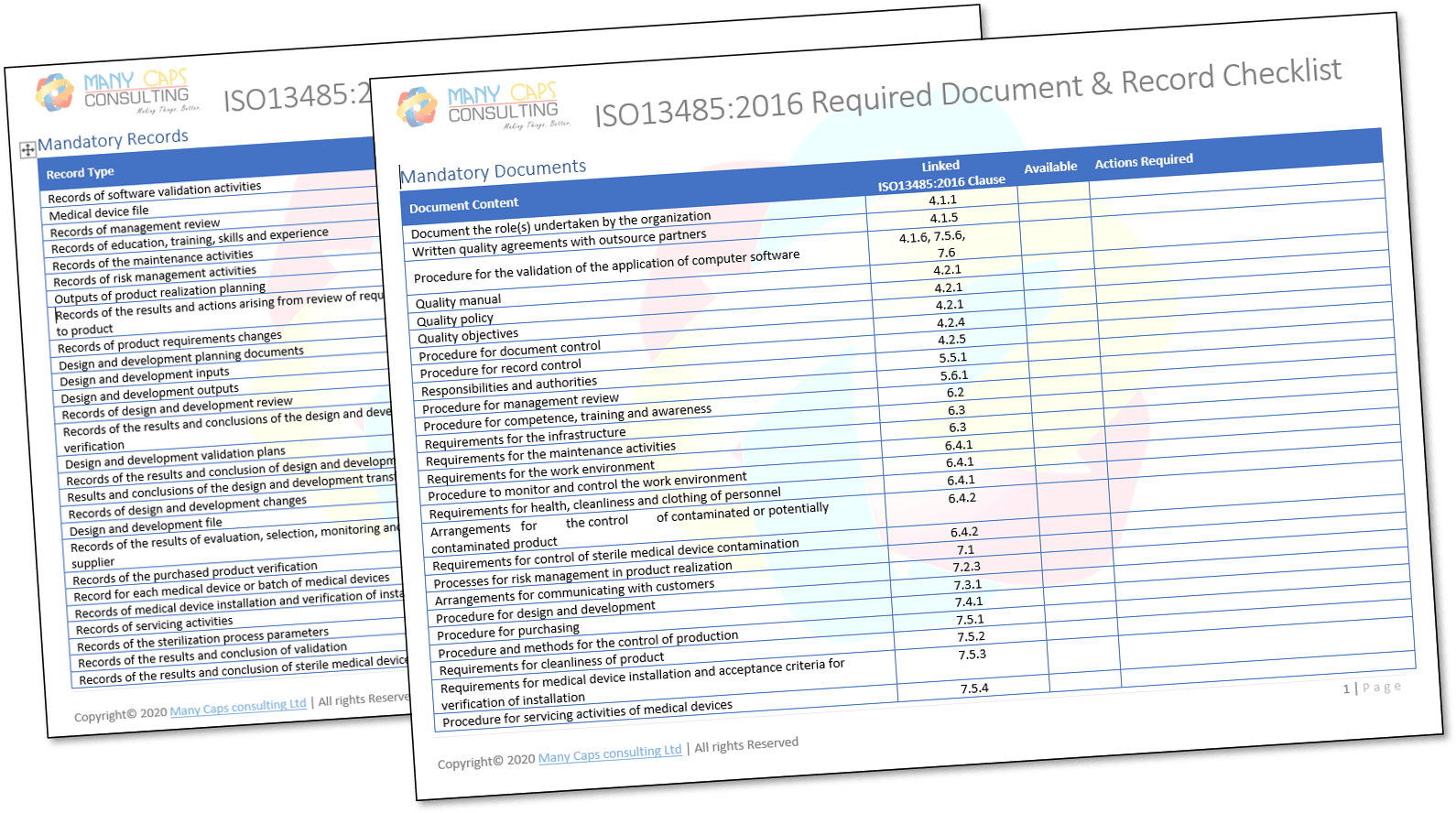 Free Resources - ISO13485 for Medical Devices - Required Documents