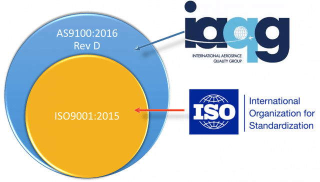 AS9100D is the Quality Management Systems - Requirements for Aviation, Space, and Defence Organisations, it is the aerospace counterpart to ISO9001 quality management systems. Moreover, AS9100D is actually built on top of ISO9001:2015, think of it as ISO9001:2015+.